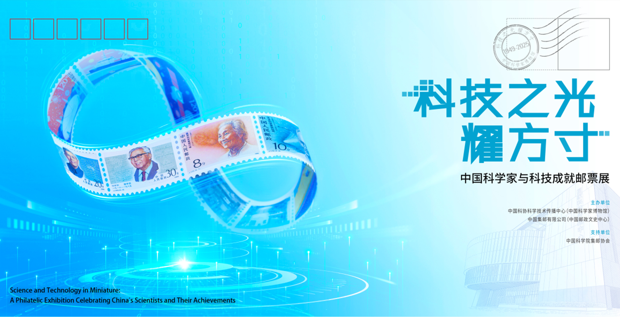 本次展览以 “科技之光耀方寸” 为主题,聚焦 “中国科学家与科技成就”,从 1708 套新中国邮票(1949-2025)中精选出266套邮票作为核心载体进行展示。展览选题紧扣党的二十大 “科技自立自强” 战略及党的二十届三中全会“探索文化和科技融合有效机制”要求,通过邮票这一兼具艺术性与史料性的载体,系统呈现中国科技从古代文明到现代化强国的发展脉络。